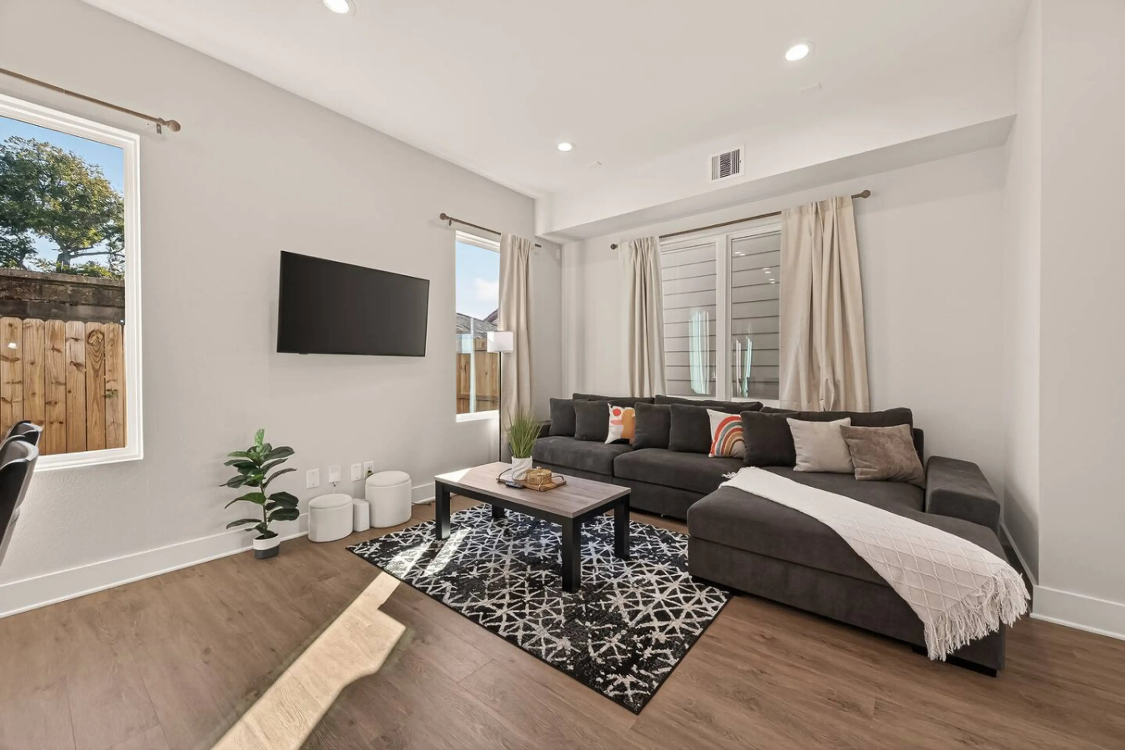 5-star host Enjoy this modern 3BR retreat with a spacious king suite, stylish décor, Smart TV, fast Wi-Fi, and a fully stocked kitchen. Relax in the bright living room, rest in hotel-quality beds, and enjoy self-check-in, free parking, and a washer/dryer. 6 miles to Downtown 15 miles to IAH 35 mi...
