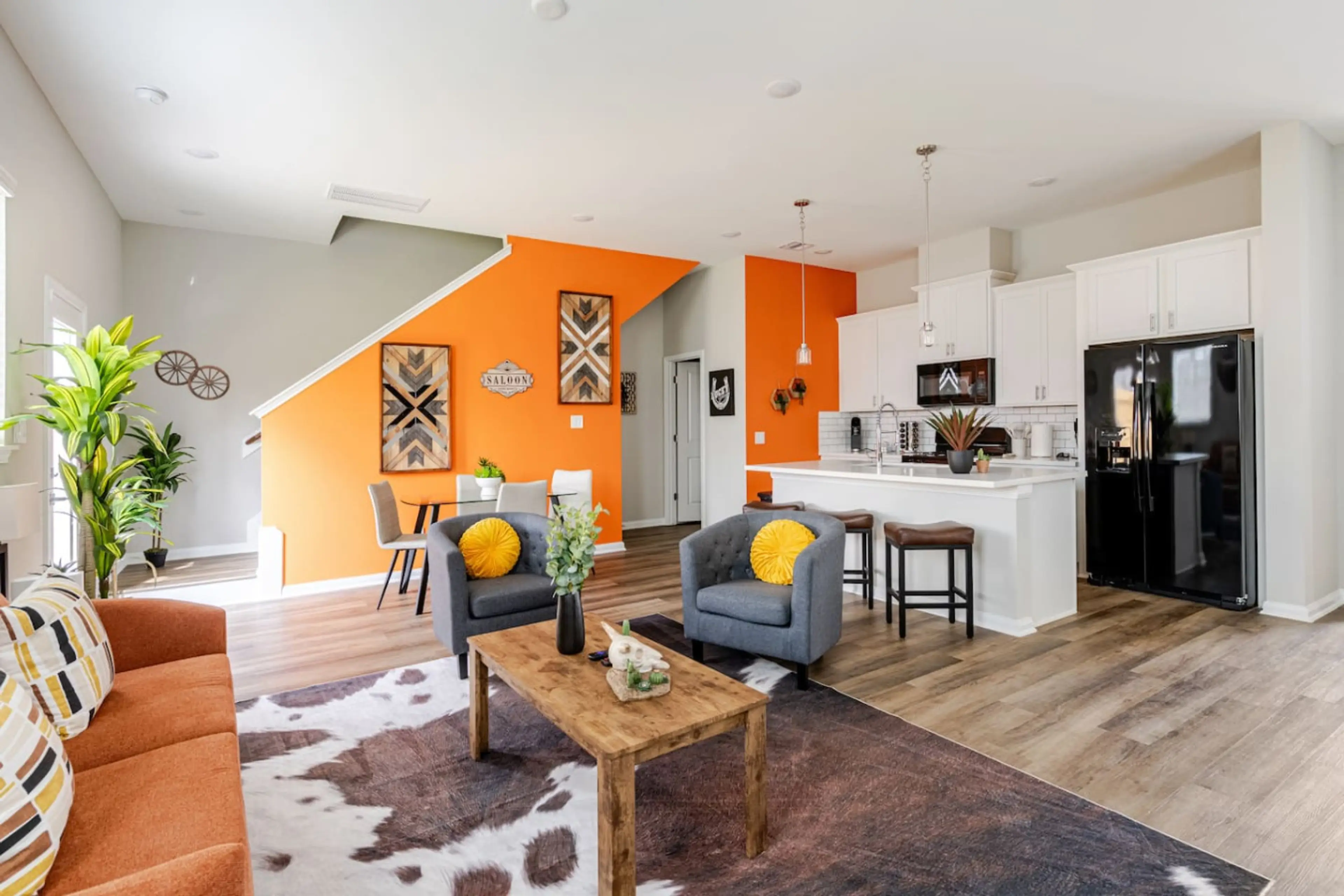 Spacious new-build 3BR townhome featuring a full kitchen, Smart TVs, high-speed WiFi, in-unit laundry, and private garage parking. Bedrooms offer a king bed and generous storage. Convenient short-term stay near Downtown (11.3 miles) and IAH (12.8 miles). Please note that you must complete our pre-c...